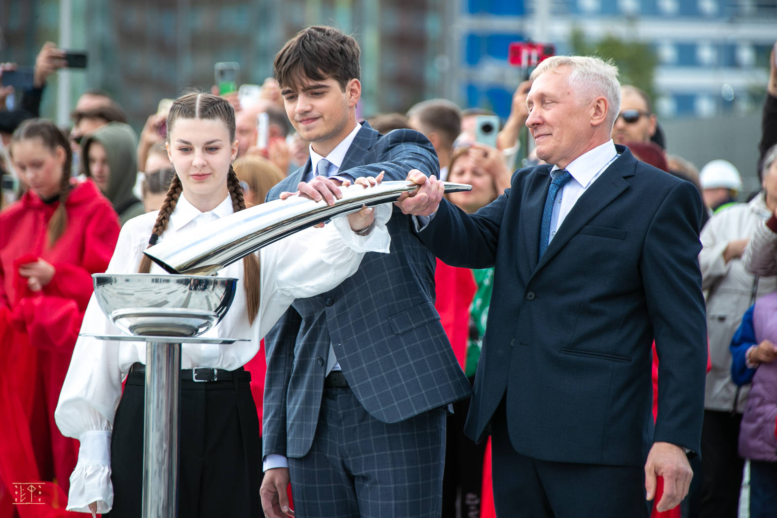 Новая скульптура выполнена в форме ладони, протягивающей огонь. Негасимый факел символизирует подаренный стране газ.
