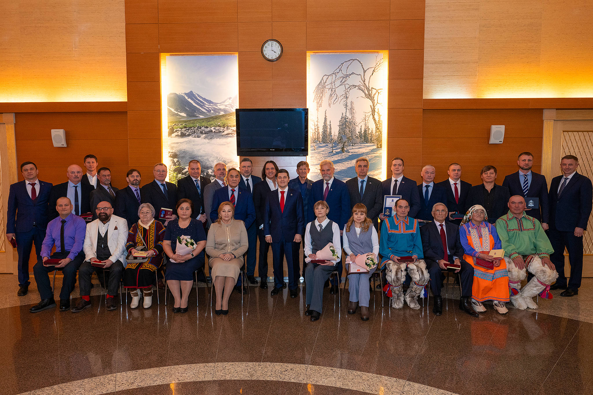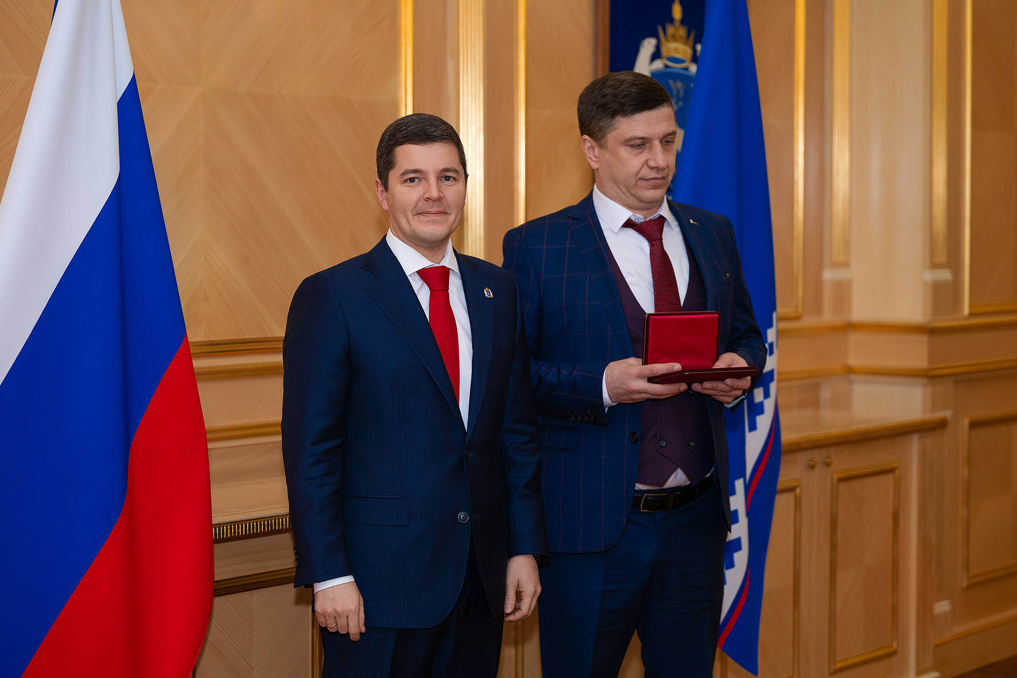 Назад к новостям10 декабря, в день 95-летия округа, губернатор ЯНАО Дмитрий Артюхов вручил награды выдающимся ямальцам, внесшим особый вклад в развитие региона. Торжественная церемония состоялась в окружной столице. Открывая мероприятие Дмитрий Артюхов поздравил присутствующих с праздником. Он отметил, что Ямал остаётся одним из центров энергетического потенциала страны, территорией стабильности и динамичного развития, и в этом заслуга тех, кто упорным трудом обеспечивает его мощь и славу. Почётные награды получили 29 жителей, достойно трудящихся на благо региона.
