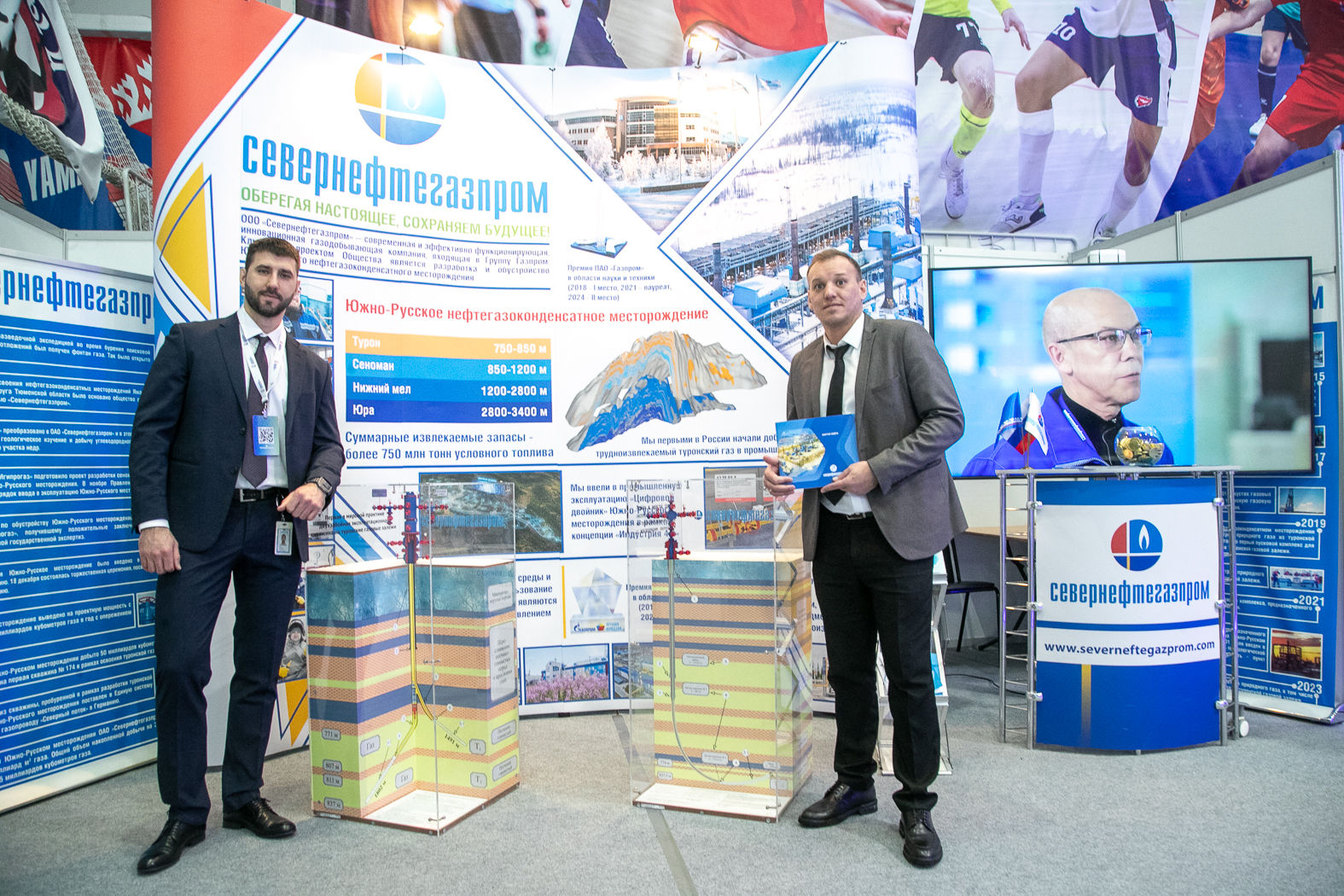 В центре внимания – юбилейная, 20-я межрегиональная специализированная выставка «Газ. Нефть. Новые технологии — Крайнему Северу». На выставочном стенде нашей компании можно было подробно познакомиться с передовыми методами работы и достижениями Общества. Представляя проект, главный инженер-первый заместитель генерального директора ООО «Севернефтегазпром» Алексей Легай отметил, что на стенде представлены инновационные и актуальные технологии, которые уже успешно реализуются в компании. Особый интерес экспертов вызвали технологии добычи трудноизвлекаемого газа туронской залежи и достижения в области цифровизации.