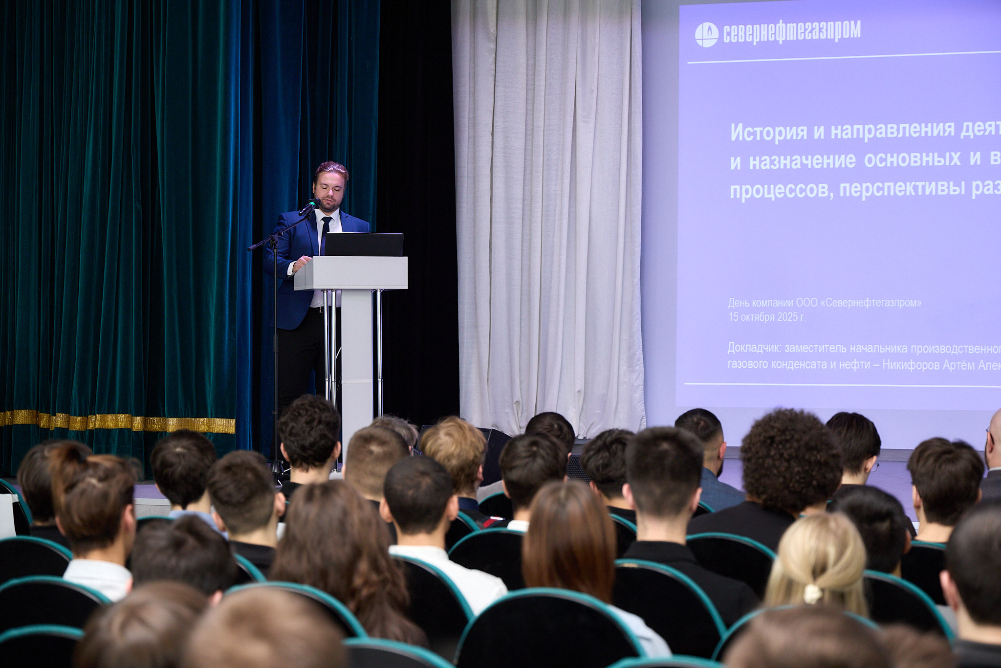 Студенты получили уникальную возможность напрямую пообщаться с представителями структурных подразделений, глубже понять их деятельность, а после презентаций смогли задать спикерам вопросы и обсудить интересующие темы, в том числе преимущества вахтового метода работы в компании.