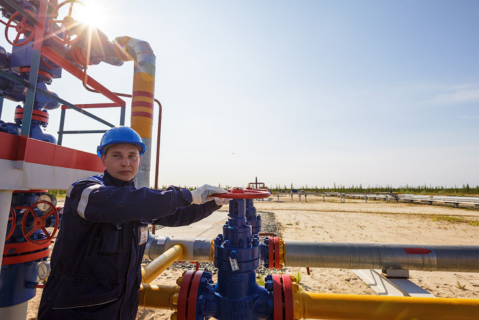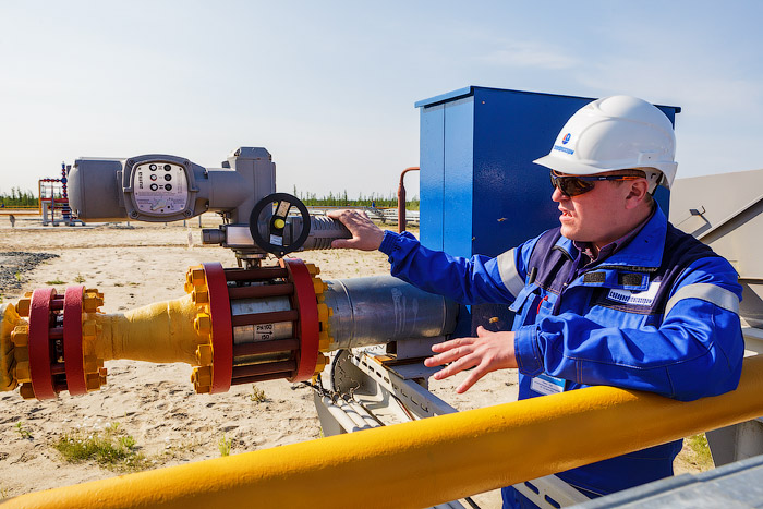 На сегодняшний день на месторождении эксплуатируется 143 скважины. Оператор по добыче газа 4 разряда Анатолий Андреев «запускает» скважину, то есть направляет поступающий из нее газ в систему газосбора.