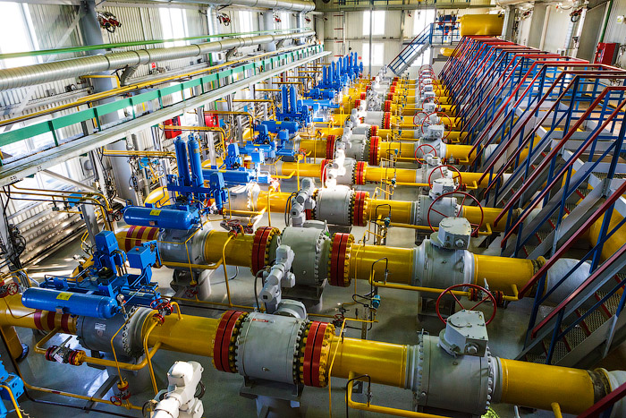 Это здание — пункт переключающей арматуры. Сюда «приходят» газопроводы-шлейфы и соединяются в единый коллектор, и отсюда же потом «уходит» товарный газ.