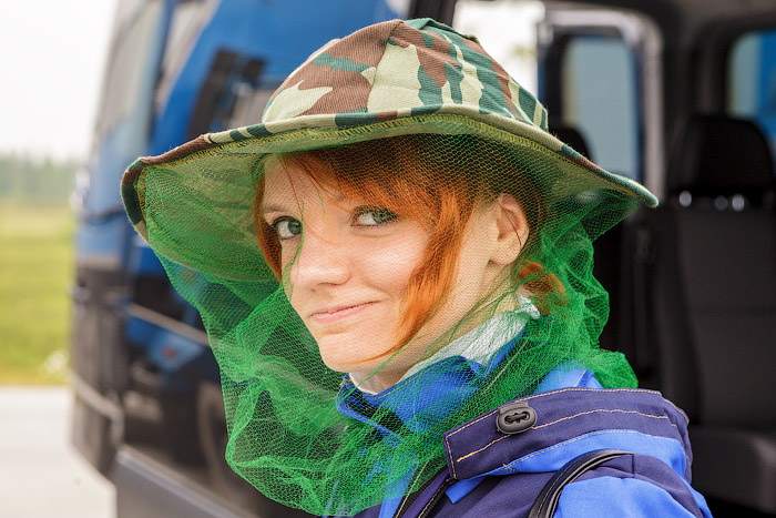 Но зато слишком много «обещанных» нам ранее комаров. Некоторые из гостей сначала скептически относились к накомарникам, но вскоре все быстро их надели. Даже местные жители, бывает, носят противокомариные сетки.