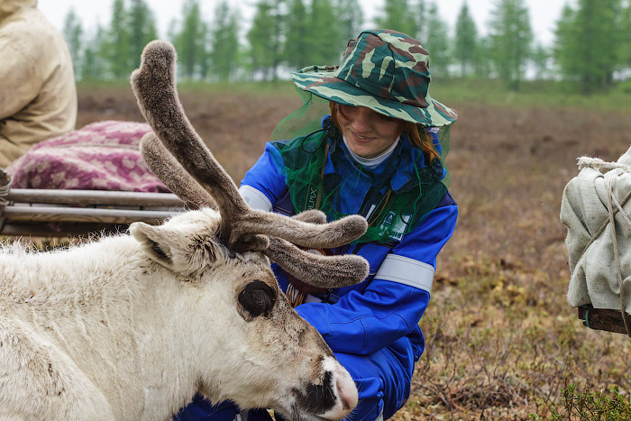 В дополнение к уже выданным антикомариным средствам нам вручили спецодежду — специальную сетку, которая называется накомарник. Как выяснилось, не зря — комары на стойбище оказались просто «дикими», и если бы не защита, то участников пресс-тура съели бы живьем.