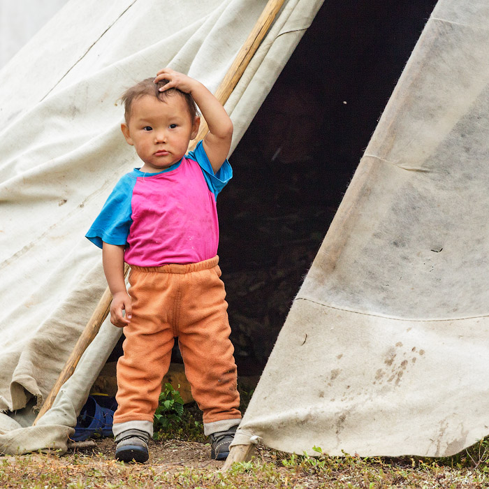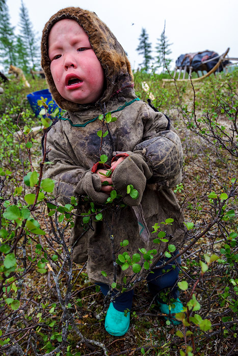 Маленький селькуп побежал за мамой и, запутавшись в кустарнике, упал. Самостоятельно поднялся и начал реветь на всю округу, пока его старший брат не вернулся за ним. Идти потом отказывался, равно как и принять помощь от чужих.