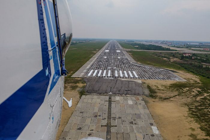 В Красноселькупе КВС (командир воздушного судна) мастерски посадил вертолет около бетонной площадки.
